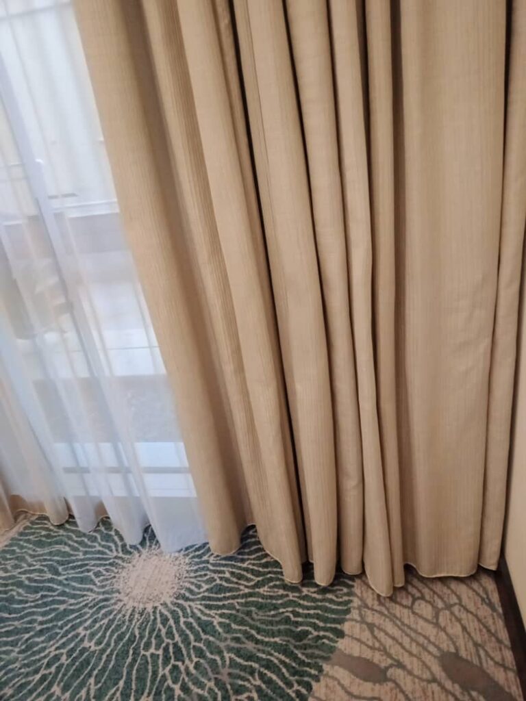 الستائر: يمكن أن تمنح الستائر الثقيلة والمظلمة للغرفة جوًا أكثر فخامة. اختر أقمشة عالية الجودة وتأكد من أنها تتناسب مع باقي الديكور.