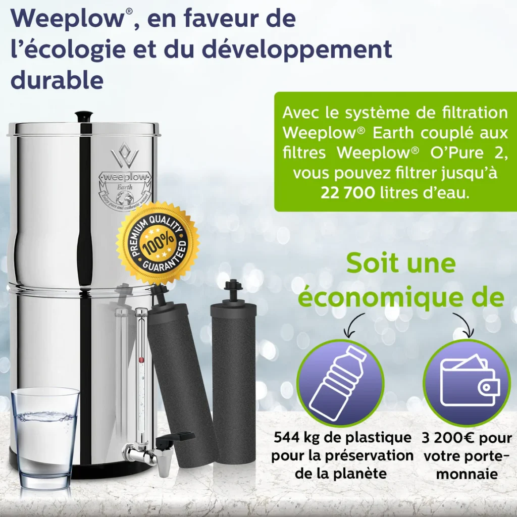 نظام لتصفية المياه بالجاذبية مصنوع من الفولاذ المقاوم للصدأ AISI 304 المخصص للأغذية وهو فعال للغاية في جعل أي مصدر مياه غير موثوق صالحًا للشرب.
